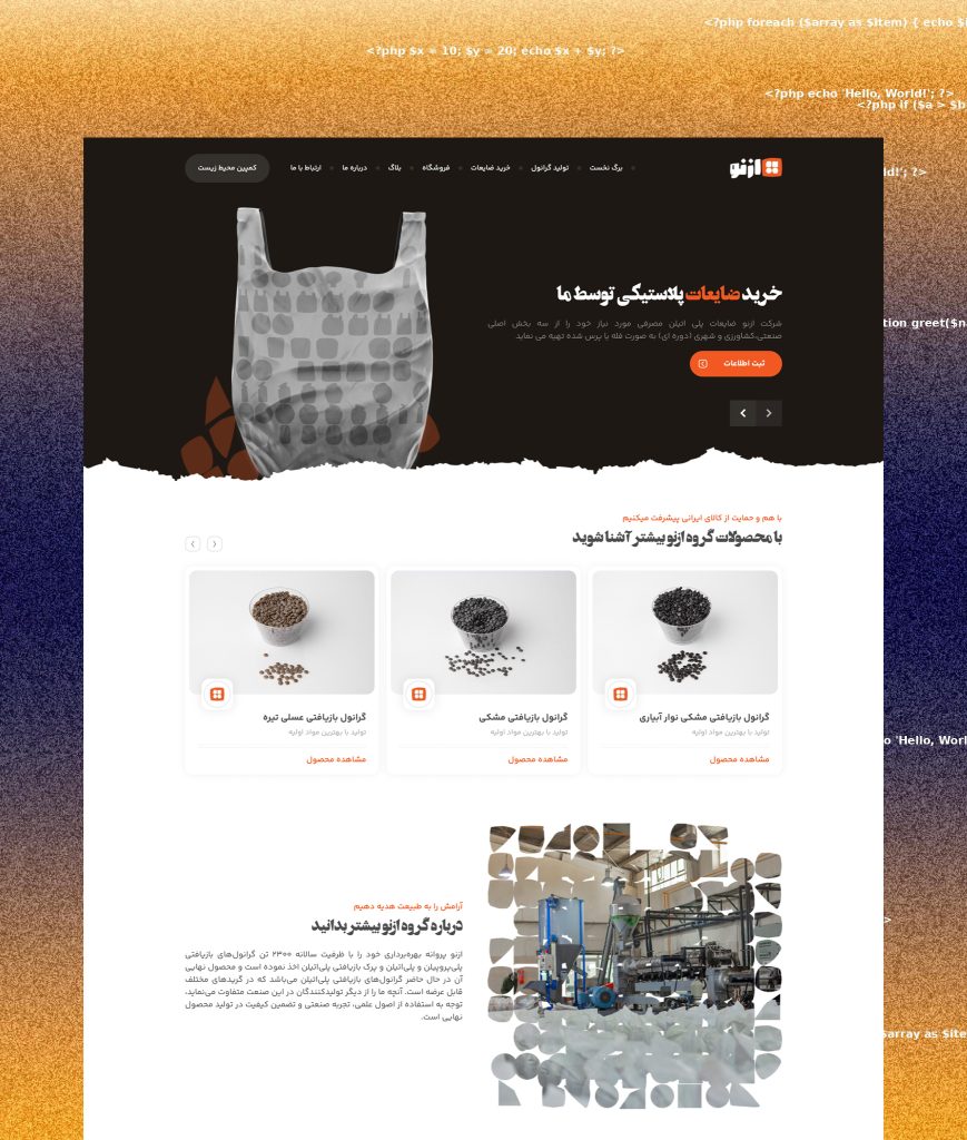 گروه صنعتی طب پلاستیک نوین، بزرگترین تولیدکننده ظروف یکبار مصرف در ایران، از ابتدای سال 1399 و در راستای عمل به مسئولیت اجتماعی خود، توسعه اقتصاد چرخشی و کمک به حفظ محیط زیست اقدام به مطالعات اولیه جهت راهاندازی کارخانه بازیافت مواد پلاستیک مکانیزه با برند تجاری ازنو (AZNO) در سایت شماره 3 خود واقع در شهرستان شاهرود نمود.وب سایت این مجموعه در خدمت وردپرس کاستوم طراحی شده است. استفاده درست و به جا از برندبوک مجموعه که یاد آور ضایعات، پلاستیک و گرانول است همراه با تلفیق رنگ نارنجی زیبایی دو چندانی به این سایت بخشیده است